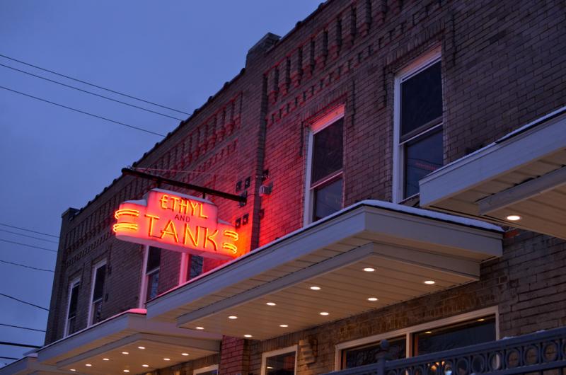 Ethyl and Tank is a restaurant, bar, coffee shop on 13th and High, Columbus Ohio. We did the complete interior design, managed the custom fabrication and created the name and logo.